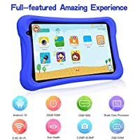 [Full-Featured Kid Tablet] - Come with android 10.0 OS, 2GB RAM, 32 GB ROM, Quad-core Processor, Pritom L8 runs smoothly while providing more space for storage. [32GB inetnal 128GB extendable storage via SD card (not included)] 2.0 Front 8.0 MP Rear Camera for video chatting.3900mAh lithium polymer battery make sure this tablet lasts up to 6 hours with single charge(under the circumstance of normal using).